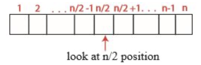 먼저 n/2 위치를 봅니다. 그러고 나서 왼쪽을 보고 오른쪽을 봅니다