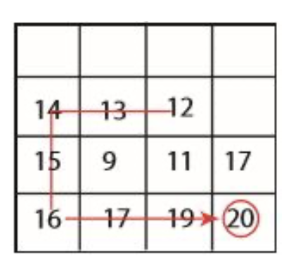 12가 있는 행을 골랐을 때 14를 극댓값으로 찾을 것입니다.