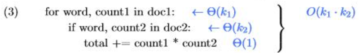 그러면 실행 시간은 문서에 있는 단어들의 길이의 합이 되고 이것은 문서의 길이이기도 합니다.