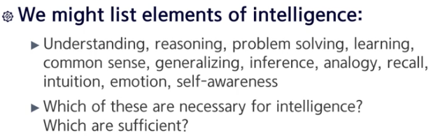 이러한 holistic definition, 즉 전체를 아우르는 정의보다는 '지능을 갖추려면 이러한 능력이 있어야 된다.'라는 식으로 정의를 하는 건 상대적으로 쉽겠죠.