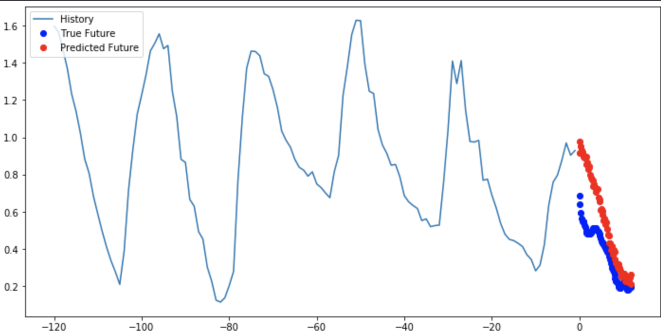 multi_step_model.compile(optimizer=tf.keras.optimizers.RMSprop(clipvalue=1.0), loss='mae')- 학습하기 전에 모델이 어떻게 예측하는지 봅시다