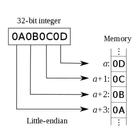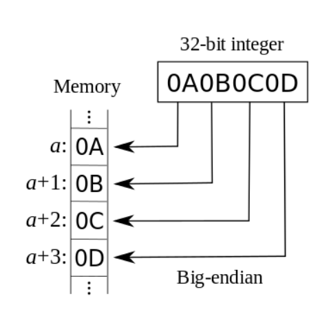 바이트 순서는 크게 빅 엔디언과 리틀 엔디언으로 나눌 수 있다. 빅 엔디언은 사람이 숫자를 쓰는 방법과 같이 큰 단위의 바이트가 앞에 오는 방법이고, 리틀 엔디언은 반대로 작은 단위의 바이트가 앞에 오는 방법이다