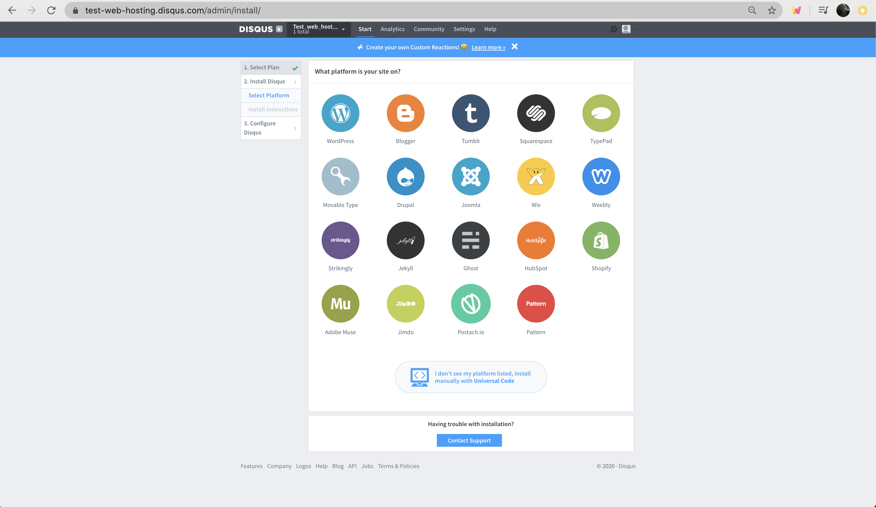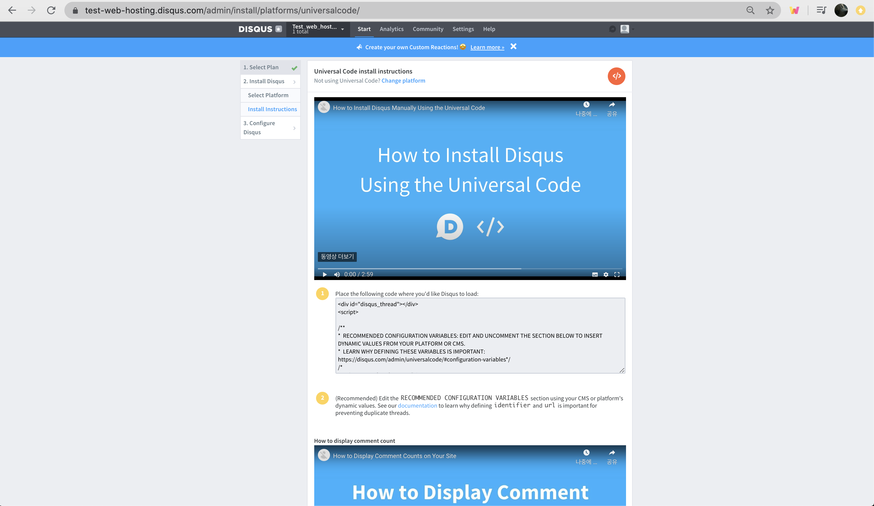 2. I want to install Disqus on my site 클릭