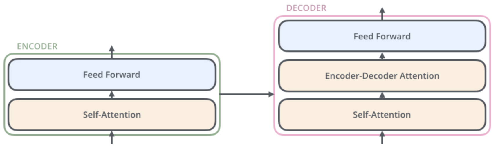 그러나 그 두 층 사이에 seq2seq 모델의 attention과 비슷한 encoder-decoder attention 이 포함되어 있습니다.