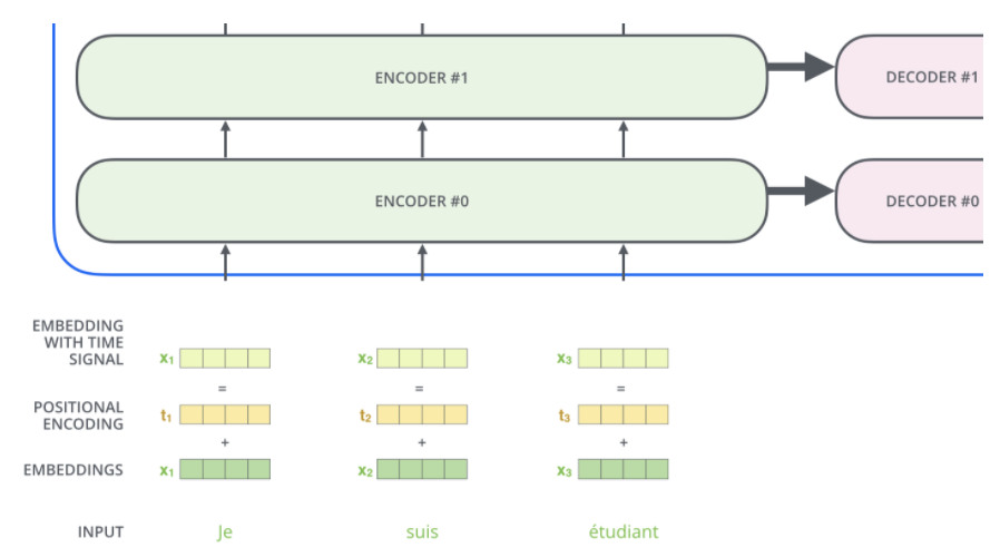 이 벡터는 가장 밑단의 encoder의 경우에는 word embedding이 될 것이고, 다른 encoder들에서는 바로 전의 encoder의 출력일 것입니다