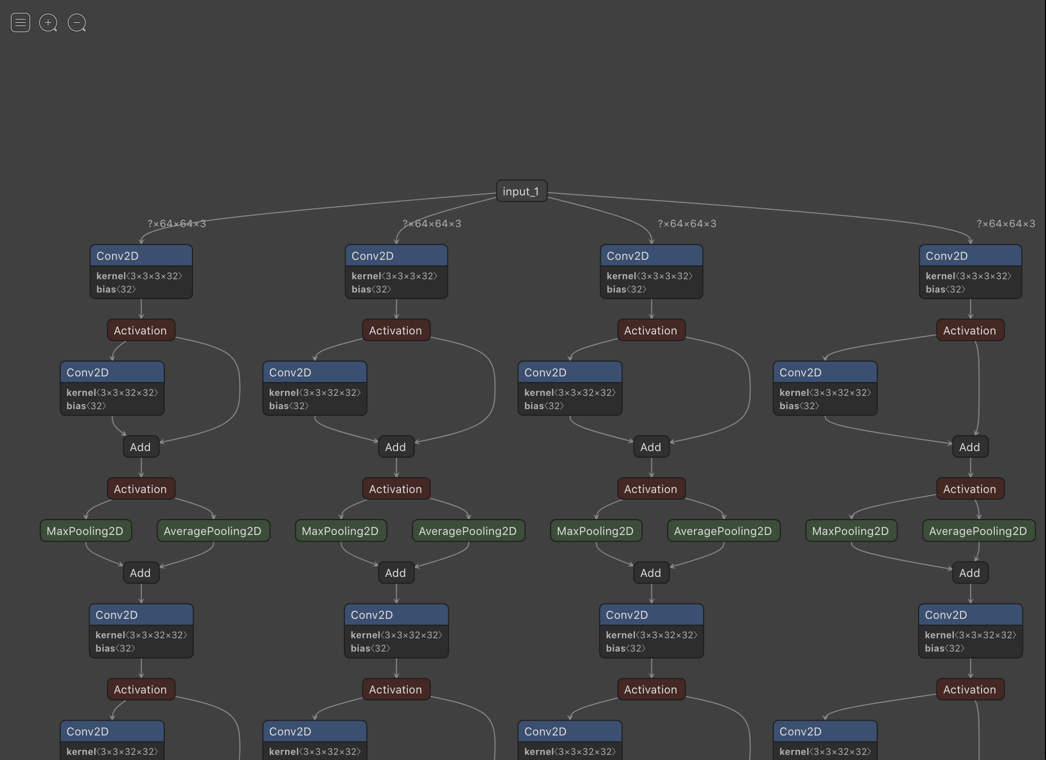 netron을 실행한 후 .h5 모델을 불러오거나 시각화 하고 싶은 .h5 파일을 실행하면 다음과 같이 결과를 볼 수 있습니다.