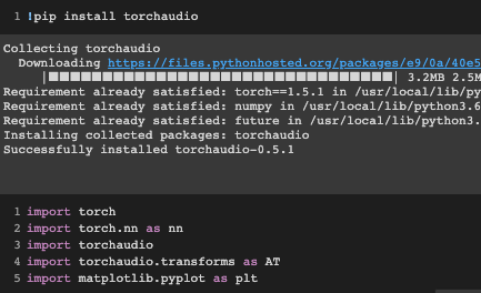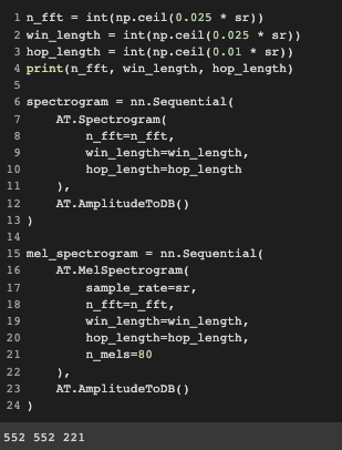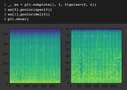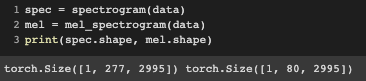 torchaudio에서는 다음과 같이 Spectrogram과 Melspectrogram을 얻을 수 있는 프로세스를 정의할 수 있습니다.